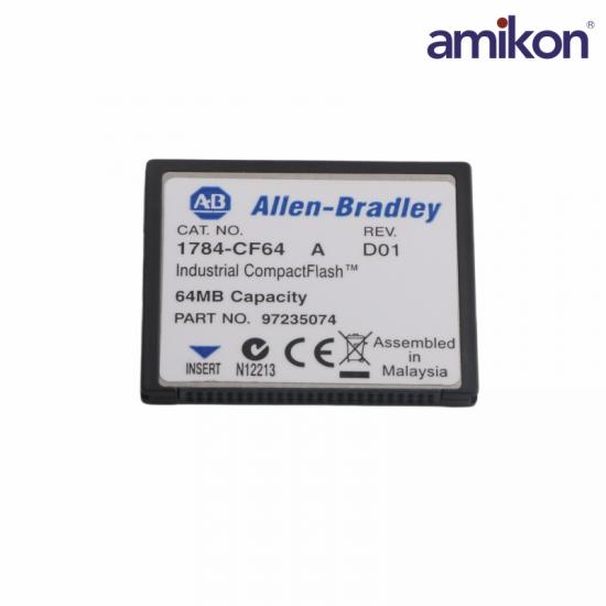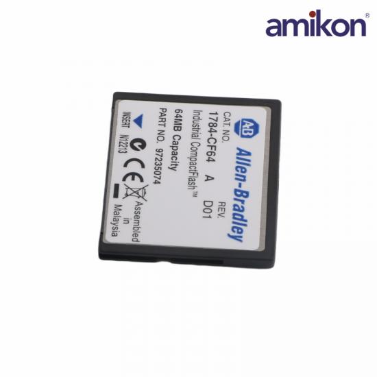 The 1784-CF64 compact card is a 556x industrial compact card made . It is a Series A card with a data storage capacity of 64 MB. The card weighs 14.2 grams. It is used mostly with L6 controllers. It is an industrial storage unit. It provides non-volatile memory for the controller. The card is easy to install in a controller. The device should be fully free of voltage during the installation. The card should be added to the socket at the bottom of the controller. The 1784-CF64 card should have an operating temperature between 0 and 60 degrees Celsius and it can be stored at a temperature between -40 and 85 degrees Celsius. The card comes with an IEC rating for 4 kilovolts of contact discharges and 8 kilovolts of air discharges. The compact card comes certified by the C-Tick and CE standards.