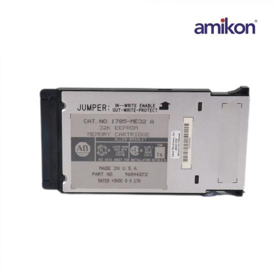 The 1785-ME32 module is a user-modifiable read-only memory (ROM) module which is erasable and it can be reprogrammed repeatedly through applications with a higher than normal power supply voltage. This module is used to store a small amount of data that must be stored when power is removed as in the calibration table or device configuration. Turn off all the power to the chassis and I/O processor before downloading the program from this module.