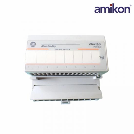 The 1794-OM8 is a 1794 FLEX Digital AC Output Module. It is fitted inside the terminal bus, making a connection with the field devices and the I/O bus. Modules can be inserted or removed under power since the I/O module does not have any direct wiring. It in turn saves time and removes system restarting inefficiency. The 1794-OM8 module has 8 outputs. It has 220V AC nominal On-State output voltage 159 – 264V AC On-State output voltage range 500mA maximum and 5mA minimum at 55 °C current per output and 4A (8 outputs at 500 mA) maximum current per module. It has a maximum power dissipation of 5W at 0.5A. Terminal Base units compatible with it are the 1794-TBNF and the 1794-TBN. It is installed using a DIN rail by snapping it onto the DIN rail. It has various communication options such as ControlNet, DeviceNet, EtherNet/IP, and Universal Remote I/O. The 1794-OM8 module has 16 yellow LED status indicators for each channel indicating the corresponding input device and output signal. It also has XT versions of standard modules for operating in extreme environments, which reduces panel and maintenance costs. It has a 0 - 55 °C (32 - 131 °F) operating temperature and a 5 - 95% noncondensing relative humidity.