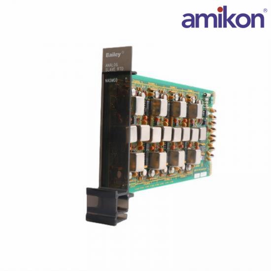 The NASM03 is Analog Slave Module.The Bailey NASM03 Network 90 Analog Slave Module accepts low level Resistance Temperature Detection (RTD) signals in system applications. It is a standard module (11 1/2" x 5 1/4 ") which slides into a single slot in the MMU and must be adjacent to the Analog Master Module (AMM) or other Analog Slave Modules. Grouping the modules together dedicates that portion of the Expander Bus for the Analog Master Module and Analog Slave Modules.