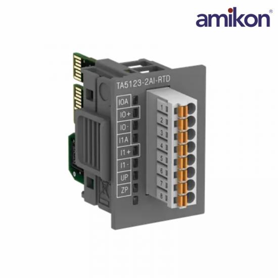 The ABB TA5123-2AI-RTD (part number 1SAP187100R0002) is a compact and rugged analog input option board designed for ABB’s AC500-eCo PLC series. This module provides two high-precision RTD (Resistance Temperature Detector) analog input channels with a 16-bit resolution, enabling accurate temperature measurement from RTD sensors such as PT100 or PT1000. The TA5123-2AI-RTD 1SAP187100R0002 board includes spring-type terminals for easy field wiring and is ideal for industrial applications requiring reliable temperature acquisition and monitoring. It integrates directly into the AC500-eCo PLC CPU’s option slot, extending the system’s analog sensing capability.