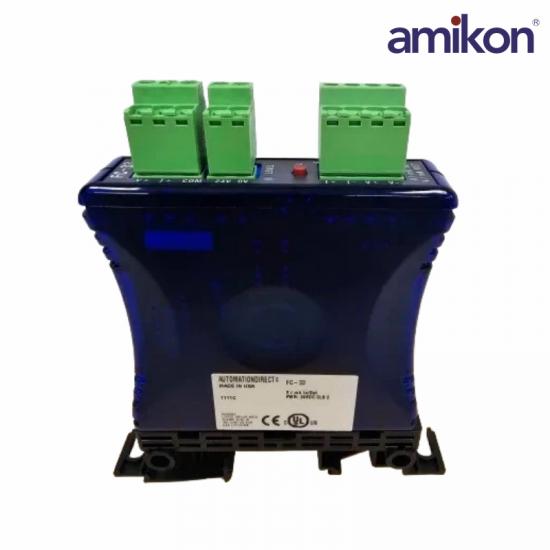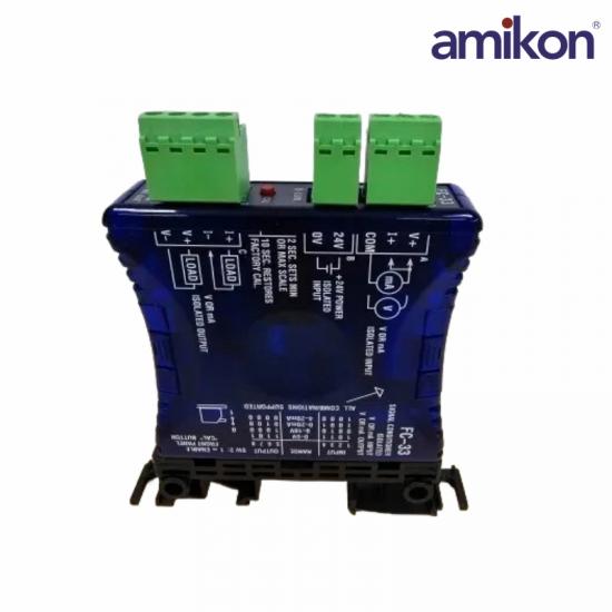 The FC-33 is a DIN rail mount, selectable input / output signal conditioner with 1500VDC isolation between input and output and 1500VDC isolation from 24 volt power and input / output. The field configurable input/output types allow a wide ranging capability for 0 - 5V, 0 - 10V, 0 - 20mA, 4 - 20mA .