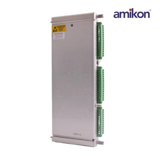 133819-02 is a RTD/TC Non-Isolated I/O Module Internal Terminations . It is a part of the Bently Nevada 3500/61. The 3500/60 & 61 modules provide six channels of temperature monitoring andaccept both Resistance Temperature Detector (RTD) and Thermocouple (TC)temperature inputs. The modules condition these inputs and compare themagainst user-programmable alarm setpoints. The 3500/60 and 3500/61 provideidentical functionality except that the 3500/61 provides recorder outputs foreach of its six channels while the 3500/60 does not.