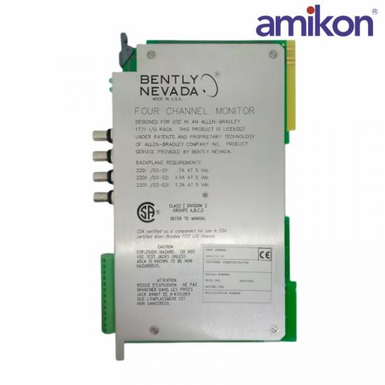 CooThe Bently Nevada 2201/3/1 Four Channel Monitor is a vibration and condition monitoring system designed to provide real-time data and diagnostics for the health and performance of industrial machinery and rotating equipment.
