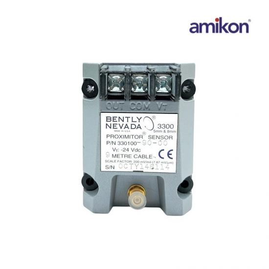 The 330100-90-05 is 3300 Proximitor Sensor.The 990 Vibration Transmitter is intended primarily for the original equipment manufacturers (OEMs) of centrifugal air compressors or small pumps, motors, or fans who prefer to provide a simple 4 to 20 mA proportional vibration signal as the input to their machinery control system. The transmitter is a 2-wire, looppowered device that accepts input from our 3300 NSv* proximity probe and its matching extension cable (available in 5 m and 7 m system length options).