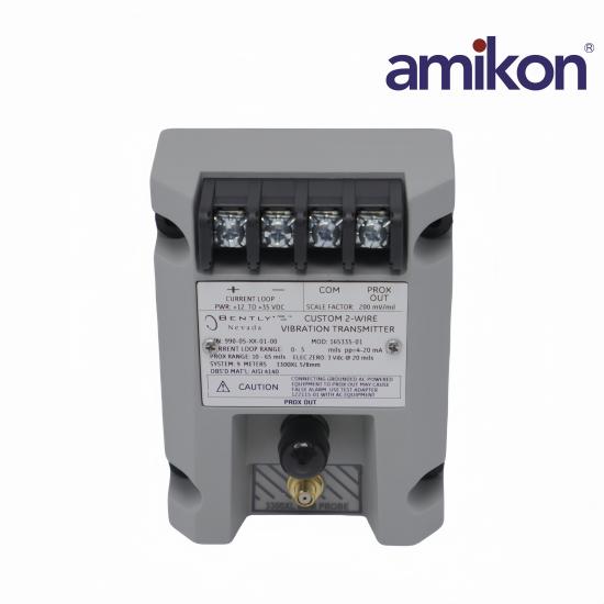 The Bently-Nevada 990-05-XX-01-00 MOD 147202-01 Vibration Transmitter is engineered for precision and reliability, ensuring continuous and accurate monitoring of machinery vibrations. Crafted with advanced materials for high-temperature resistance, this transmitter can withstand harsh industrial environments without compromising performance. Featuring a non-contact installation method, it provides a safe and efficient solution for monitoring equipment health without the need for physical contact, reducing the risk of damage or downtime. With a sensing range of 2mm and sensitivity of 1um, it detects even the slightest changes in vibration patterns, enabling timely maintenance interventions to prevent catastrophic failures. Equipped with an injection-molded package/casing and a gold connector termination type, this transmitter ensures durability and compatibility with various industrial interfaces. Designed for steam turbine applications, it plays a critical role in maintaining operational efficiency and safety by providing real-time data on vibration levels, thus supporting proactive maintenance strategies. The 990 Vibration Transmitter is intended primarily for the original equipment manufacturers (OEMs) of centrifugal air compressors or small pumps, motors, or fans who prefer to provide a simple 4 to 20 mA proportional vibration signal as the input to their machinery control system. The transmitter is a two-wire, loop-powered device that accepts input from our 3300 NSv proximity probe and its matching extension cable (available in 5 m and 7 m system length options). The transmitter conditions the signal into appropriate peakto-peak vibration amplitude engineering units, and provides this value as a proportional 4 to 20 mA industry-standard signal as the input to the control system where machinery protection alarming and logic occur-st.