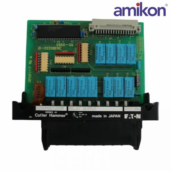 The Cutler-Hammer D200-MOD-1200R is a relay output module designed for integration into programmable logic controller (PLC) systems. Manufactured by Eaton under the Cutler-Hammer brand, this module provides 12 relay output points, facilitating the control of various devices and actuators in industrial applications.