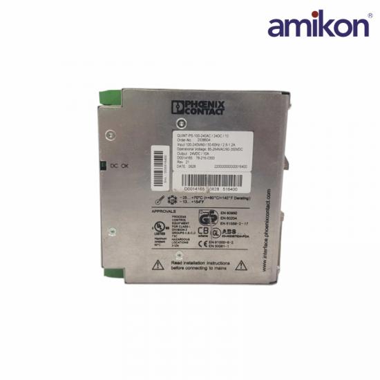 The PHOENIX CONTACT QUINT‑PS100‑240AC/24DC/10 is a high-reliability industrial switching power supply designed for and control applications requiring stable 24 V DC output. It belongs to the QUINT POWER series from Phoenix Contact and is widely used in PLC cabinets, distributed I/O systems, and machine control panels.